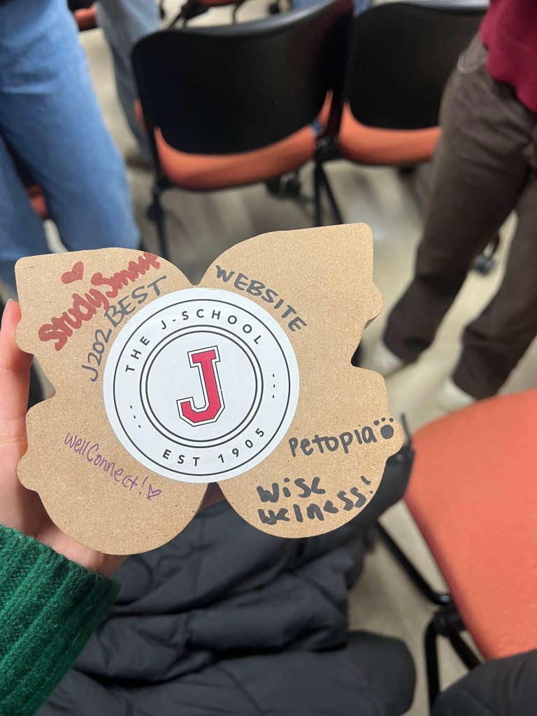 In my past journalism class, I also had the opportunity to work with my lab to develop our own app, and was specifically in charge of creating the promotional website. This website also won the award for best website of the semester! Here are a few pictures from the site design, our logo, a walkthrough video and the award.